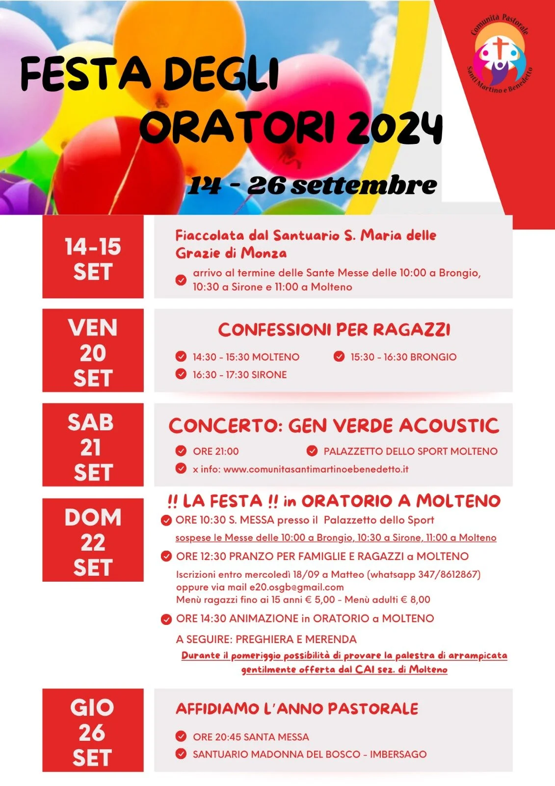 ore 12.30 pranzo per famiglie e ragazzi a Molteno: iscrizioni entro Mercoledì 18/09 a Matteo, oppure via mail e20.osgbegmail.com; menù ragazzi fino ai 15 anni € 5,00 - menù adulti € 8,00